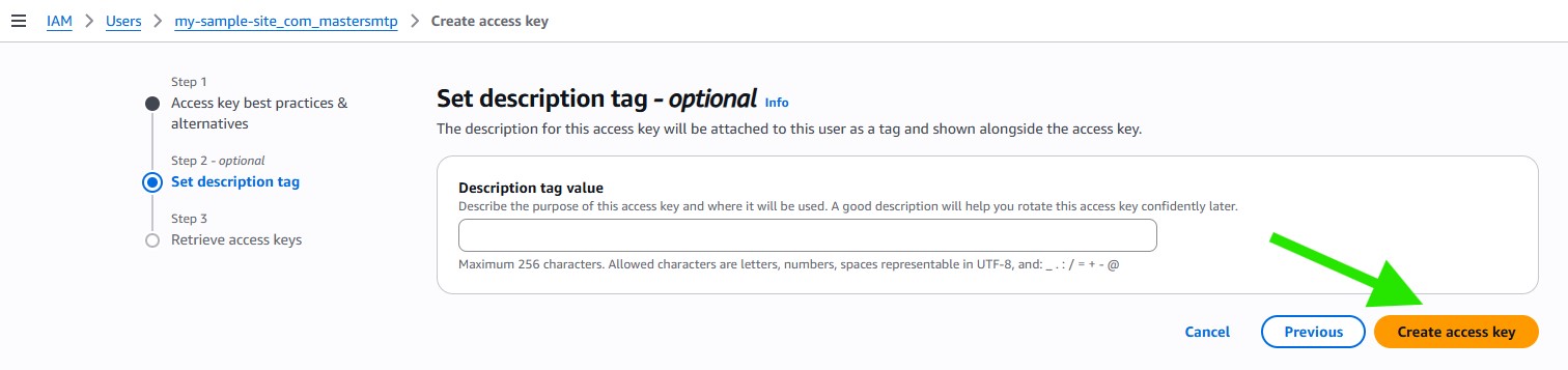 On the next page, you can leave the description tag empty and click Create access key to proceed.