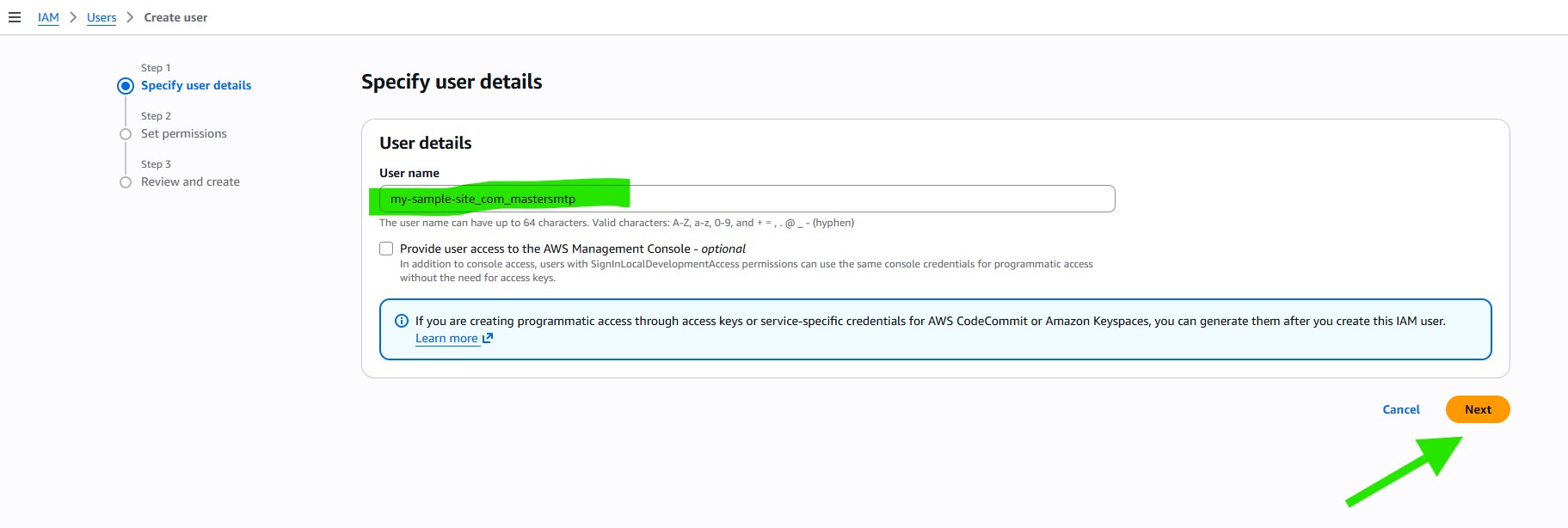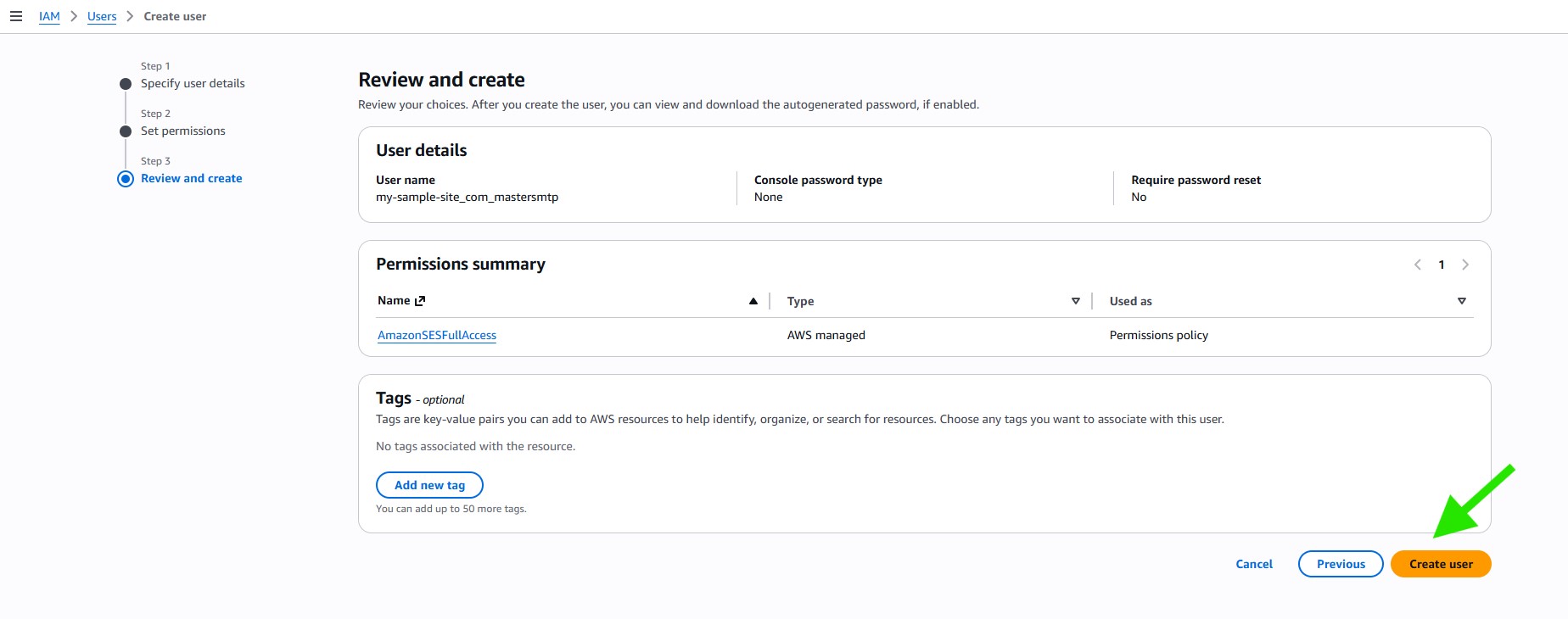 After creating your Amazon Web Services account, the next step is to create an IAM user. This user will later provide the access keys required for your Amazon AWS SMTP setup.