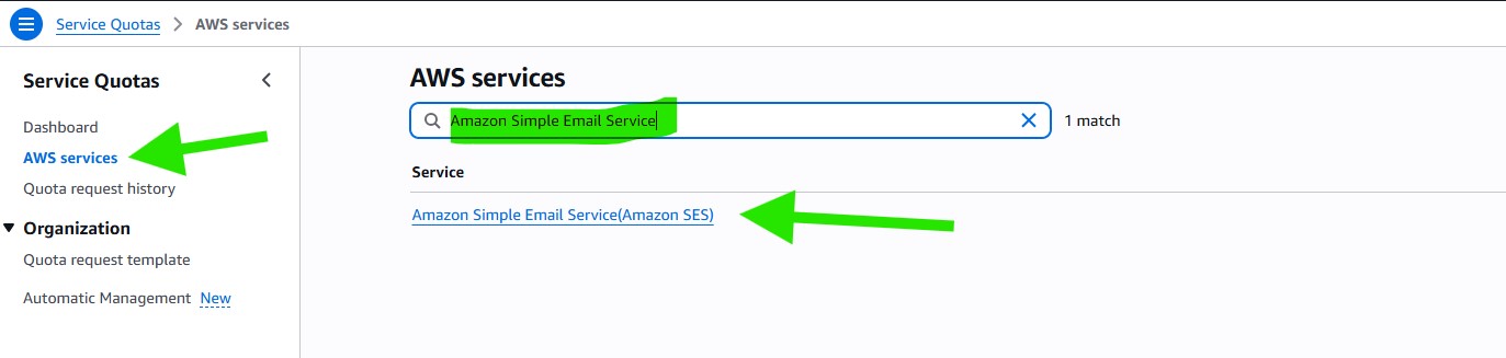 You should see a single result named Amazon Simple Email Service (Amazon SES). Click this option to continue.