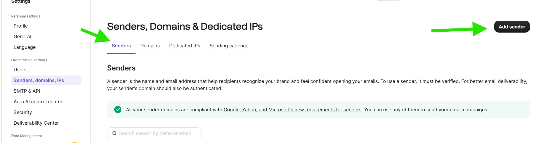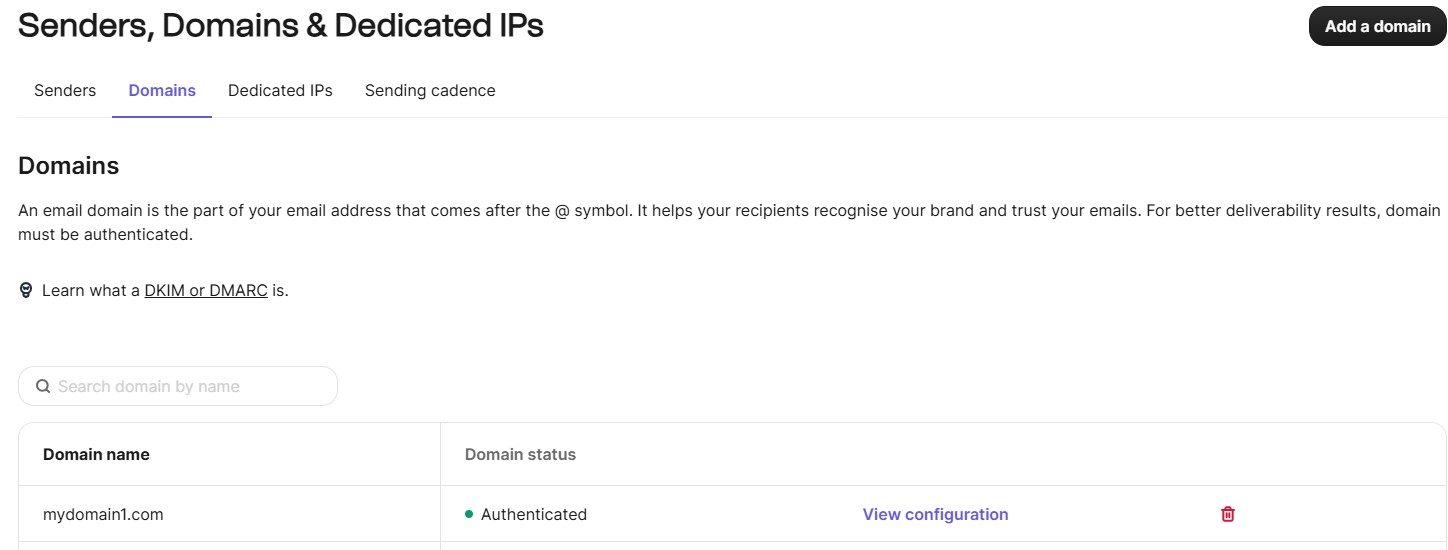 Senders, Domains & Dedicated IPs