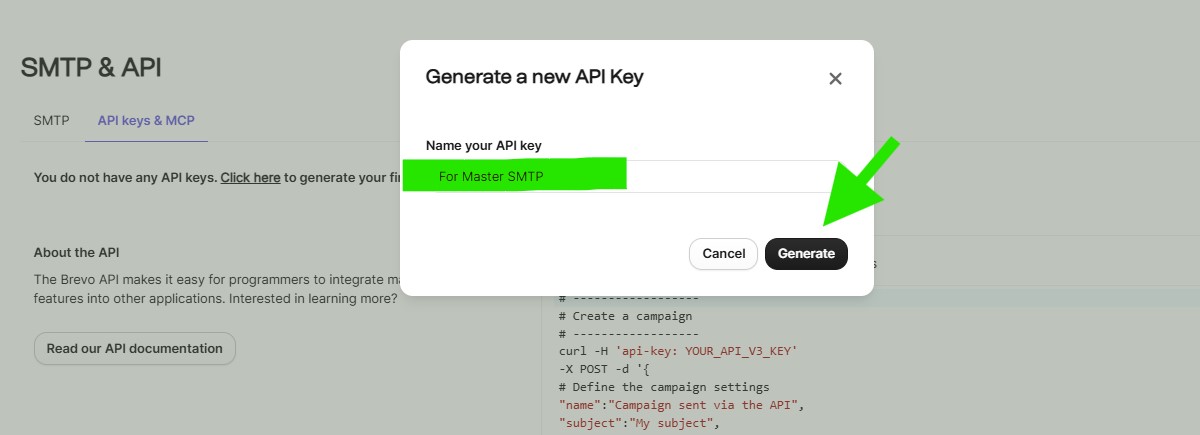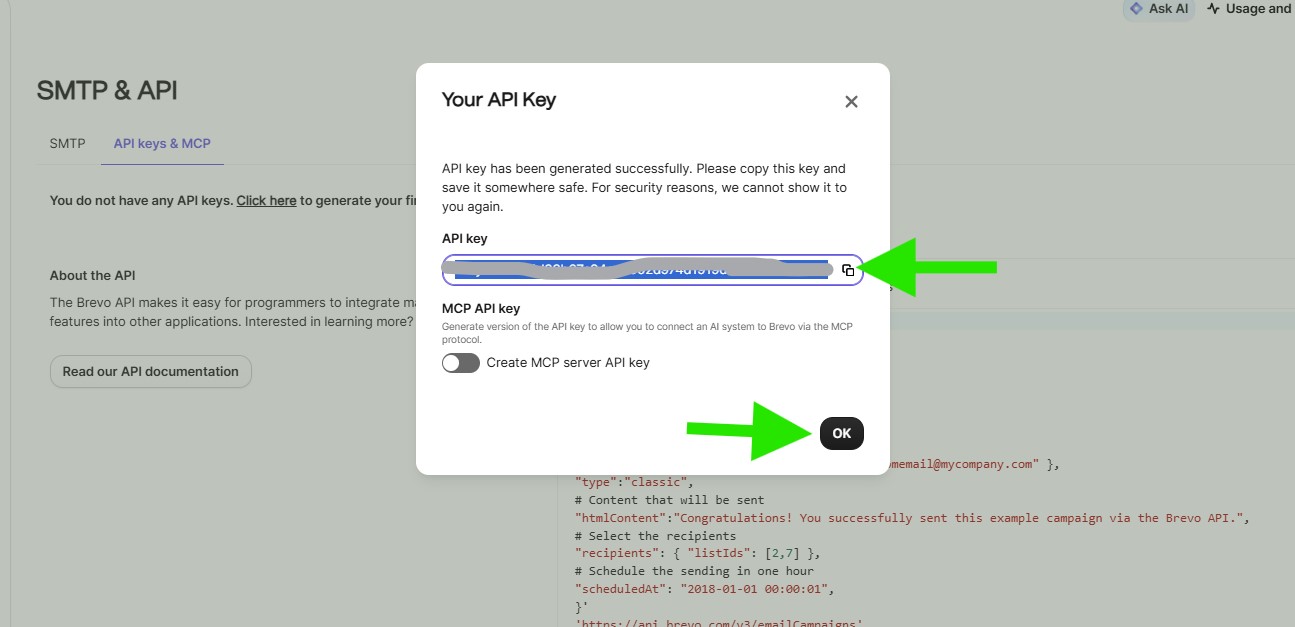 Create an API Key in Brevo