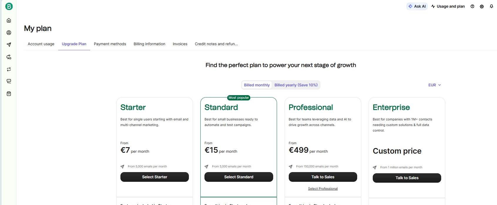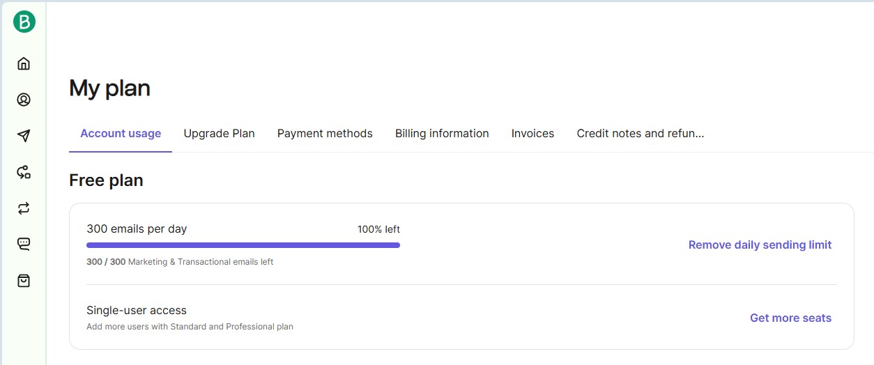 If you need a higher daily sending limit, click Upgrade Plan and choose a paid plan.