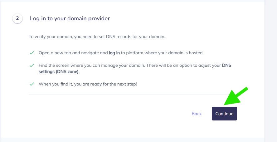 Once you are ready to add the required DNS records, return to Elastic Email and click Continue.