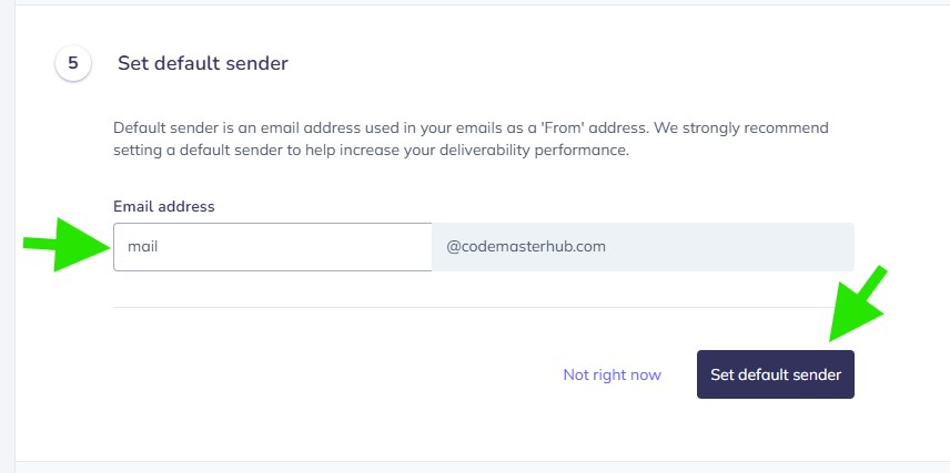 Elastic Email will now ask you to set a default sender address for your verified domain. This will be used as the default From email address for sending.