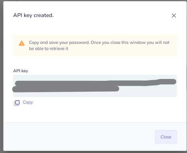 Copy this API key and save it in a safe place. You will need it later in the Master SMTP plugin settings when configuring the Elastic Email connection.