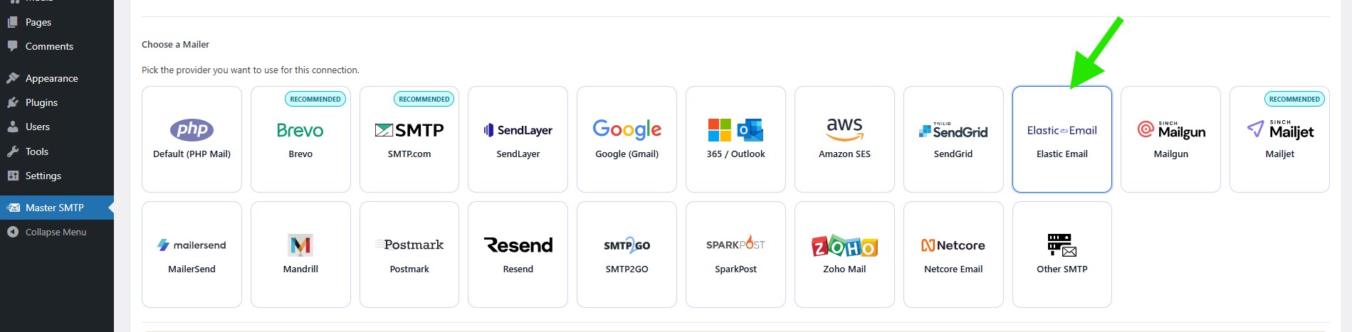 In the Choose a Mailer section, select Elastic Email  from the grid mailer list.