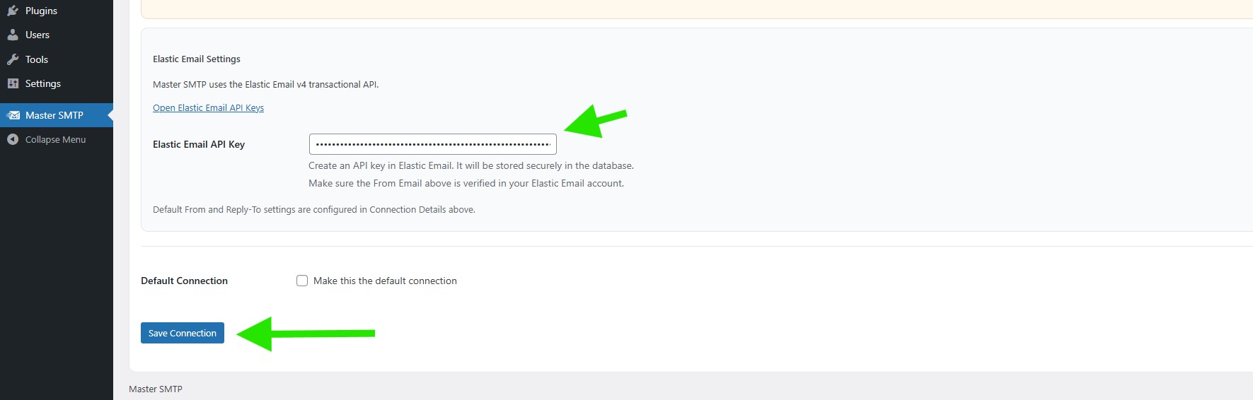 In the Elastic Email Settings section, paste the Elastic Email API key you created earlier into the Elastic Email API Key field.