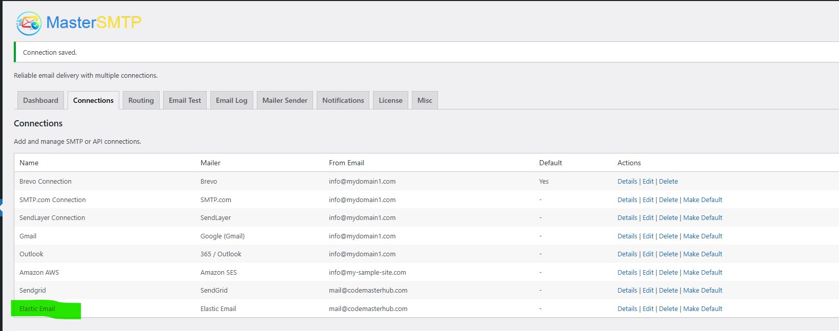 If you want to use this connection as your main mailer, enable Make this the default connection under Default Connection.
