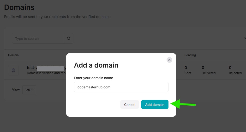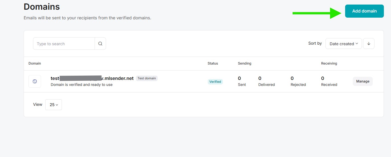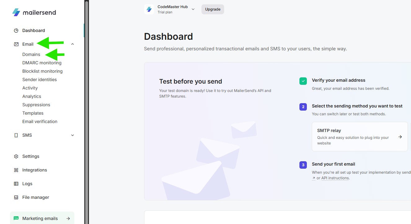 To add your sending domain, log in to your MailerSend account, then go to Email and click Domains.