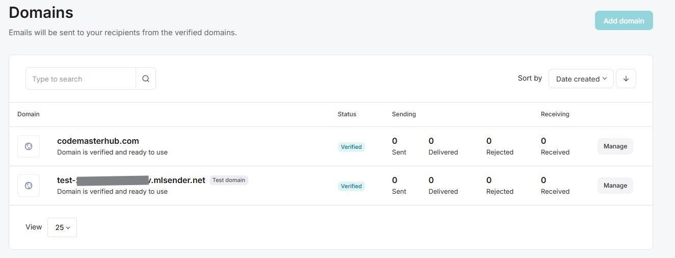 MailerSend provides test credentials that you can use if you want to try the service before adding your own domain. In this guide, we will skip that and add a sending domain instead. Verifying your sending domain confirms that you own it and helps improve email deliverability.