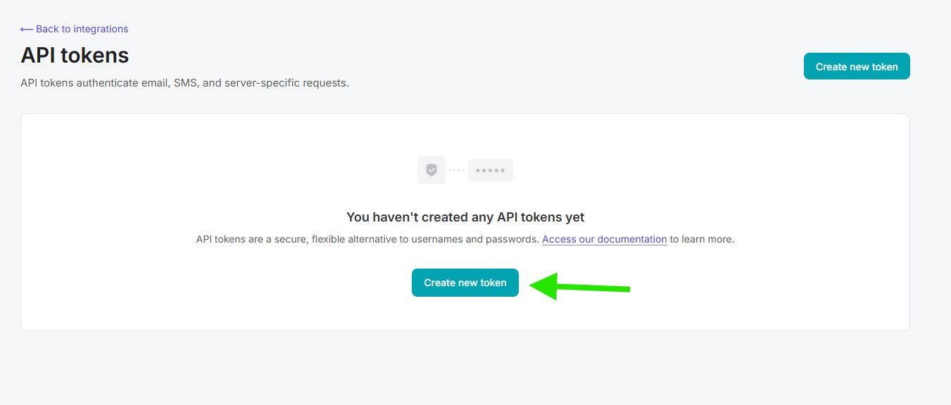 On the API tokens page, click Create new token to generate a new MailerSend API token.