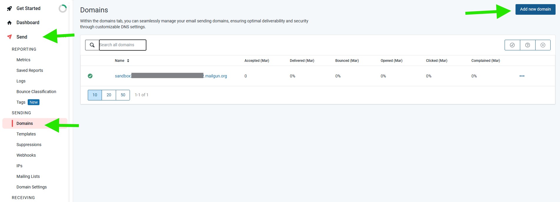 - In your Mailgun dashboard, click Send in the left sidebar.