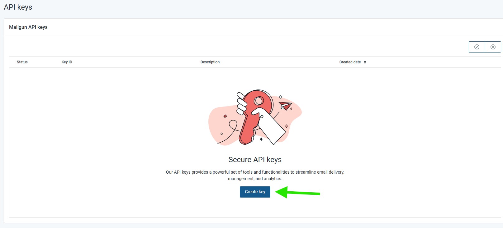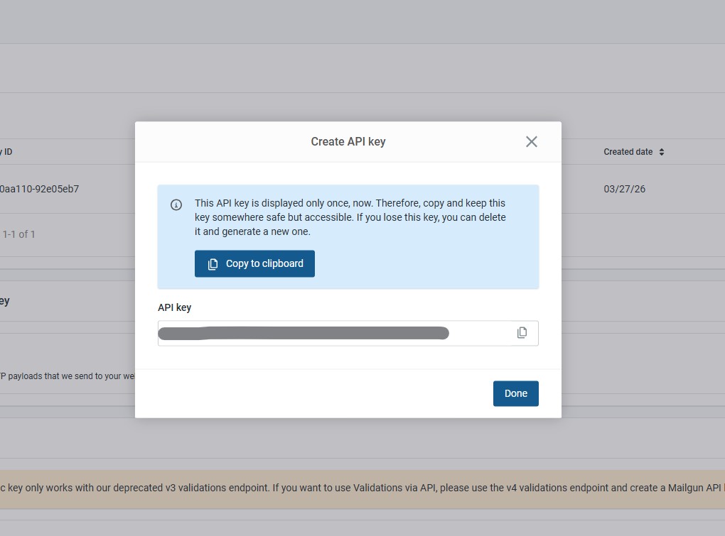 Copy the API key and save it in a safe place. You will need it in the next step when configuring Mailgun in the Master SMTP plugin.