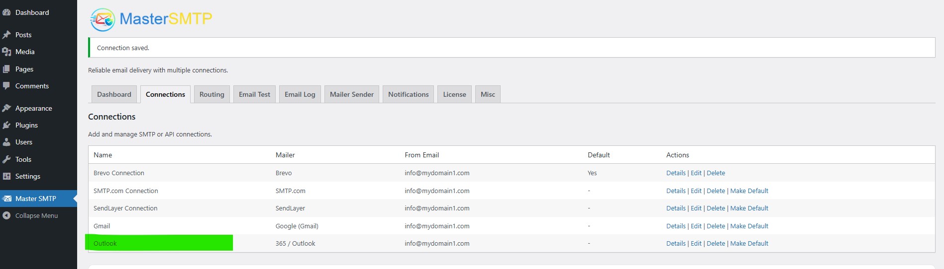 Note: The free version allows you to add only one connection. If you need multiple connections, Conditional Routing, and many other features, you should purchase the Master SMTP Pro.
