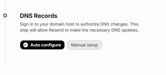 If you used Auto configure, Resend will add the DNS records for you automatically. After the setup is completed, you should see your domain marked as Verified.