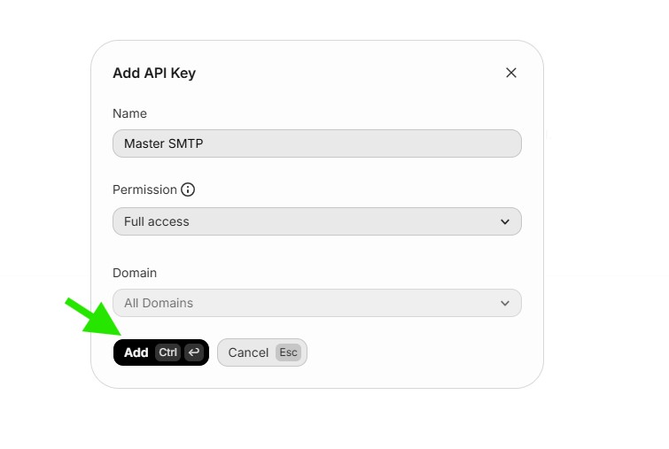 Domain: If you verified multiple domains, you can limit the API key to a specific domain, or leave it set to All Domains.