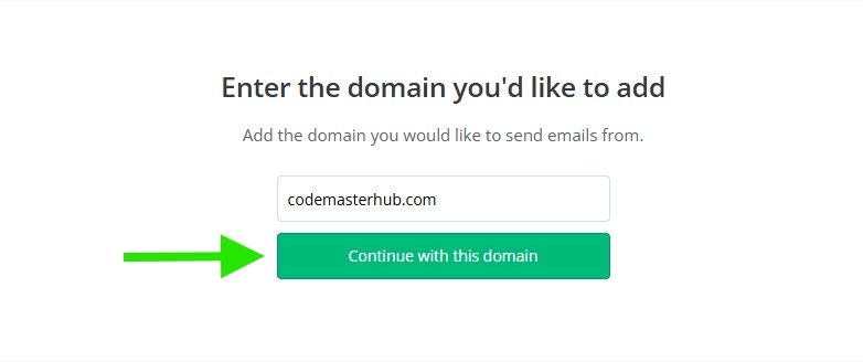 Enter the domain name you want to use for sending emails, then click Continue with this domain.