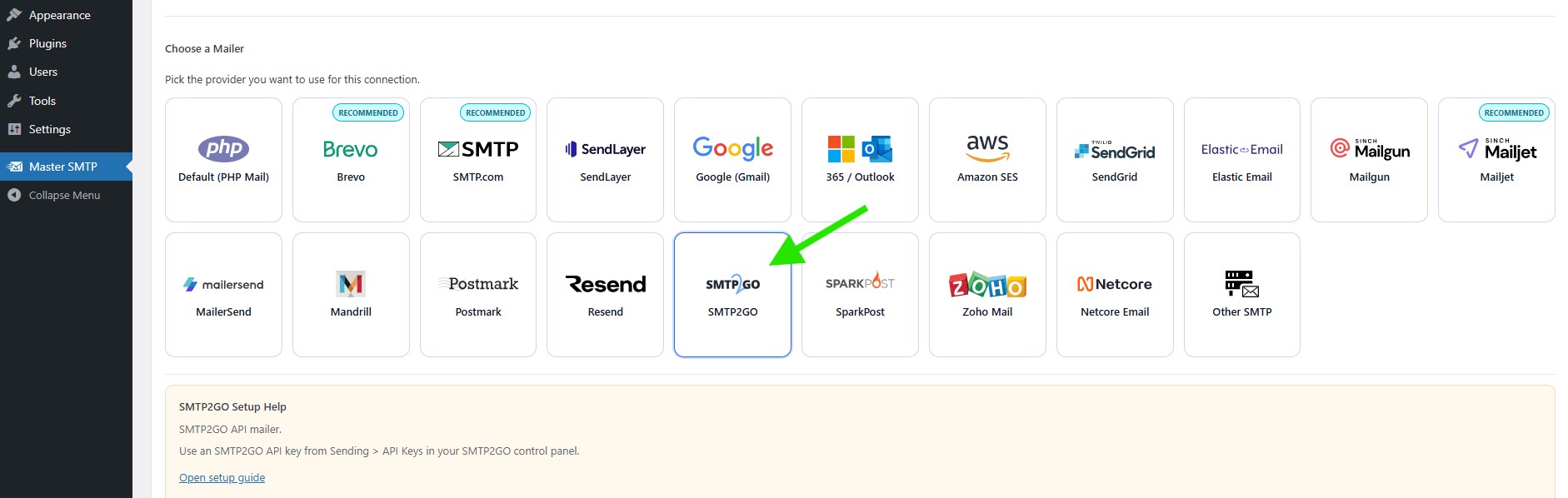 SMTP2GO Setup in Master SMTP Plugin
