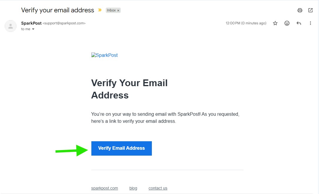 Check your inbox for a verification email from SparkPost and click Verify Email Address.