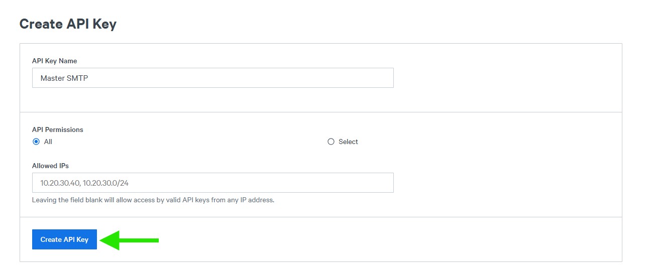 Enter a name for your API key, for example: Master SMTP.