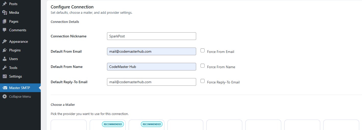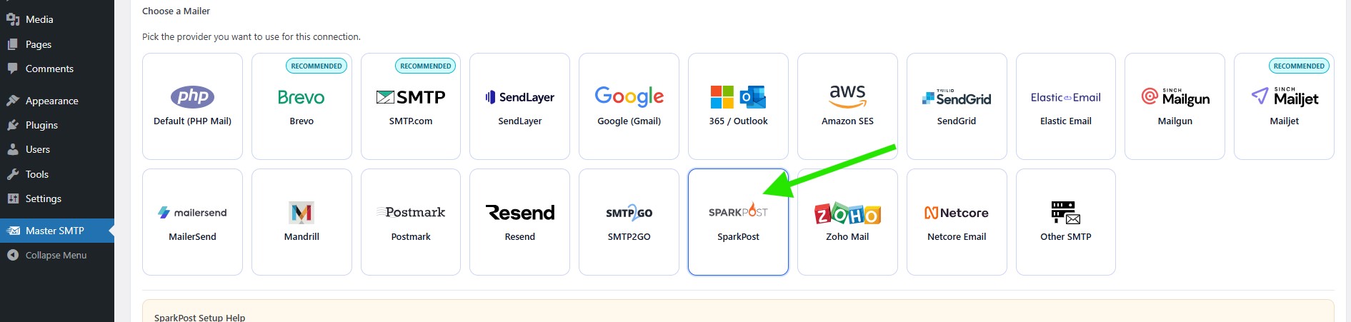 SparkPost Setup in Master SMTP Plugin